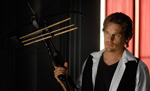 As far as playing a vampire, that was a complete new experience for Hawke, whose best-known genre film is the sci-fi study Gattaca from the mid-90s. But at least he still got to wear suits, have clean fingernails, and look nice. Making horror movie, he said was, at times, "Just absolutely miserable. Do you know what it's like to sit and eat during your lunch hour, just drenched in blood, trying to talk on the cell phone? That's the part that's the least appealing to me."