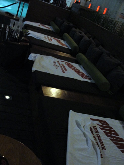 After the day was done, it was CELEBRATION TIME! We hit the Piranha 3D pool party (apropos, right?) for a bit, then the pizza gala for Let Me In (pepperoni and vampires, they go together like Rubik and cubes… don't they?).