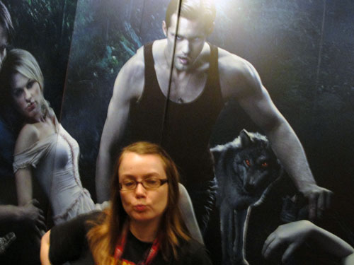 True Blood was everywhere I looked... inside, outside, sides of walls... but it wasn't till the next day, Saturday, that I'd actually get to talk to some of the vamps and werewolves.