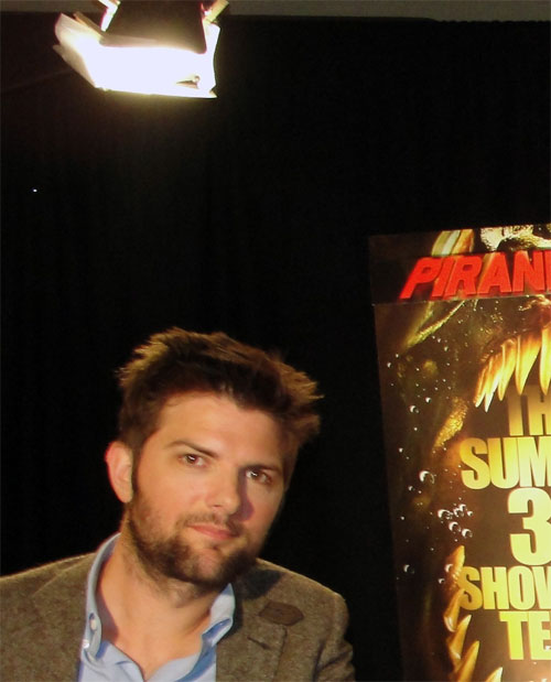 Friday was all about Piranha 3D for me. I covered it from each and every angle, for all three of my outlets. First, I want to give you a few more details about the footage the press was shown the night before. It was actually a very cobbled-together sizzle reel showing all the gratuitous stuff (the bloodiest death sequences, wet tee shirt contests, lesbian lust scenes, and a whole shipload of spoilers). It's hard to tell from that if the movie will sink, swim, or just tread water — director Alexandre Aja and the actors who were there at the Con (Elisabeth Shue, Jerry O'Connell, Steven R. McQueen, Adam Scott and Kelly Brook) said there is a heart and soul to the movie. According to them, it's more like the Irwin Allen movies of the 70s than anything else… but the clips didn't show any of that.