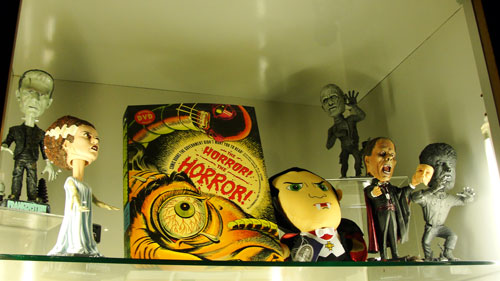 For those who "like to watch" (you pervs!), there are also several monitor displays featuring interviews with a vast array of horror film directors and actors, movie clips showing everything from The Wicker Man to Suspiria to Hostel, and other audio/visual touches.
