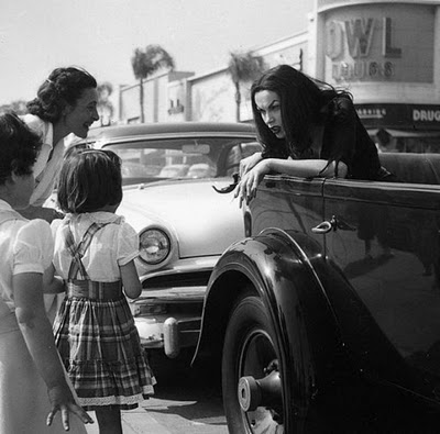 Maila Nurmi was punk rock, alt, hipster, goth, and a far out chick long before such forms of feminine self-expression became the norm. Most fans will know her as novelty horror host "Vampira" — but the rare footage presented in the new documentary about her life and times, Vampira & Me, shows the hep miss with a half-shaved head /punk/, heavily kohled eyes /alt/, treggings /hipster/, all-black attire /goth/, and even stroking a pet rat while spouting seductive prose long before INXS front-man Michael Hutchence did it for M-TV /far out/.
