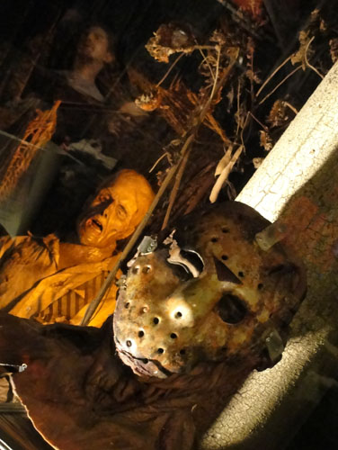 Fortunately, it's a self-guided tour, so I was able to linger as long as I liked among the charming vintage silent-era esoterica and the grittier sets containing modern-day (but just as speechless) slashers such as Jason Voorhees' Camp Crystal Lake. The monstrous memorabilia displays include masks worn by Kane Hodder in Jason Goes to Hell: The Final Friday, the Michael Myers disguise from Halloween 4: The Return of Michael Myers and Hannibal Lecter's muzzle from The Silence of the Lambs (as well as a complete recreation of his jail cell in a prison corridor). The museum also has the church pews from The Exorcist film, plus the most complete collection I've ever seen of original Hammer horror posters, and an amazing array of mummy memorabilia and Cleopatra keepsakes.