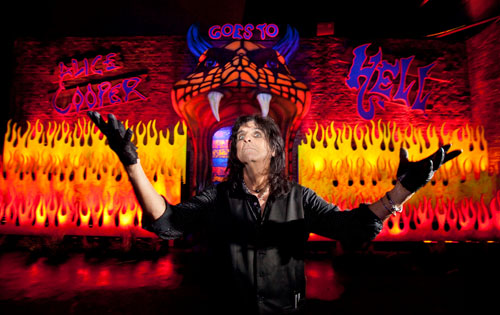 Every year, for many years now, Horror.com has been covering the annual Eyegore Awards and the opening night ceremonies for Universal's ever-popular Halloween Horror Nights. I remember the first time we covered it, there were maybe 8 crews standing by — we looked more like a receiving line than a full-on red carpet reception. But, it's always been a nifty time regardless of size or popularity. This year, big genre stars and celebs such as Alice Cooper and Guillermo del Toro were in attendance and on-hand to receive awards and meander through mazes. 2012 marks the second year of an Alice Cooper "Goes to Hell" 3D maze and this one's even better than the last.