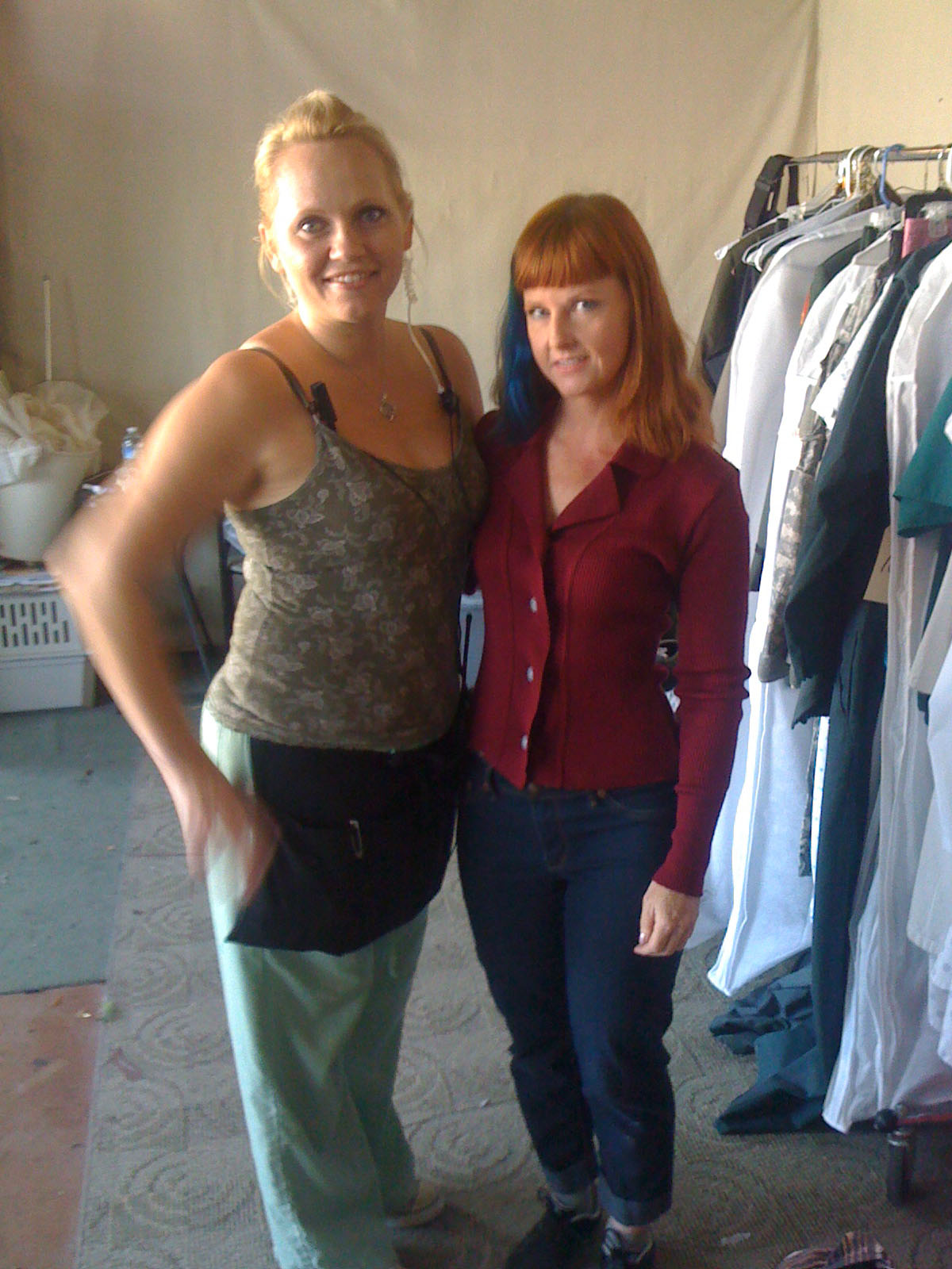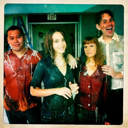 Nope, Mega Spider is not filmed in some historical Hollywood studio where Marilyn Monroe, Clark Gable and Carole Lombard once strolled. Here in dirty downtown L.A., inside a well-worn warehouse turned filming hot-spot, it's Lombardo Boyar, Greg Grunberg and Clare Kramer — and they're not so much strolling as they are running. The palm trees are cell-towers, and the Mai-tai's are cafeteria style mini-milks. 1%. Wardrobe is mostly my own clothes, which nobody warned in advance will be coated in sugary paste, mystery goo, and white thready things that are supposed to be spider webs.