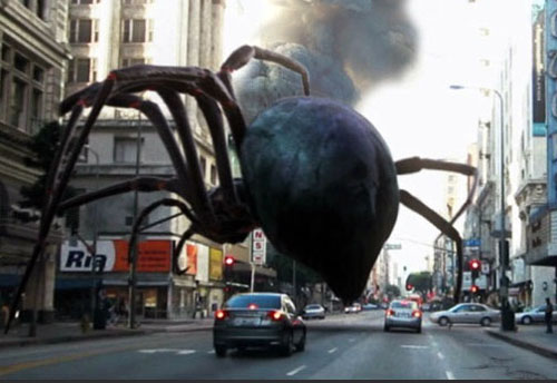 Presumably the eight-legged enemy is vanquished, but I guess you'll just have to tune in yourself to find out, when Mega Spider is released in 2013. (Please don't blink when Greg and 'Bardo enter the office, leap into the elevator, and emerge from the building.)